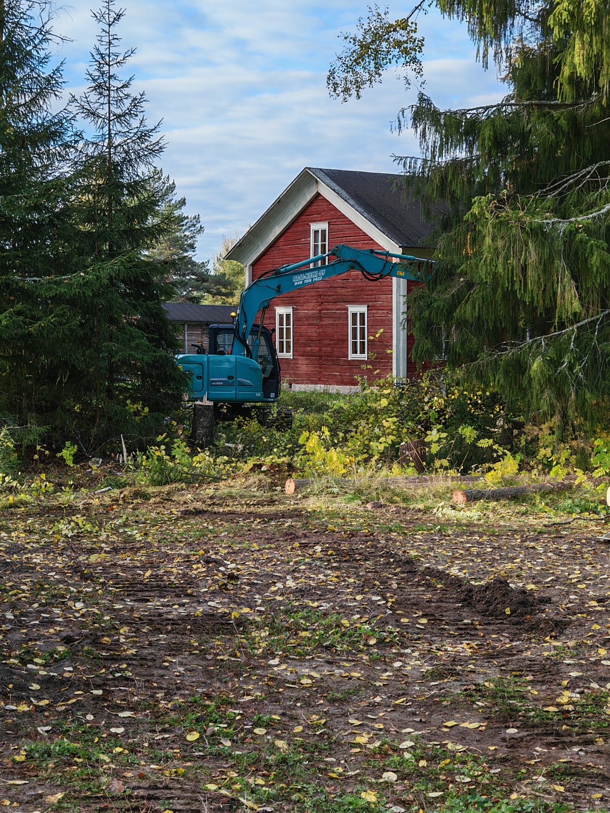 Tänään se viimein tapahtui! Kauan suunniteltu, uuden katetun katsomon, projekti käynnistyi vihdoin puiden kaatamisella Katvalan museoalueella.